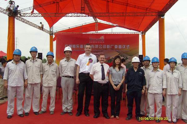 經過近兩年的跟蹤,業主的嚴格考察、審核和激烈的競標,第二直屬分公司于近日簽約擁有90年歷史的歐洲著名食品跨國公司——廣州焙樂道食品有限公司新廠項目的樁基與土建主體工程合同,合同價3488萬元人民幣,合同期一年。圖為6月17日舉行的開工典禮現場。