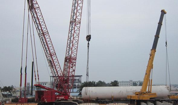 2011年12月21日,華東分公司成功吊裝普萊克斯(海南)中航三鑫PL-3XL機電設備。該項目從12月15日進入設備吊裝安裝階段,項目部針對吊裝設備重量大、現場狹小實際情況,認真組織工程技術和施工作業(yè)人員,制定了措施嚴謹施工組織方案。對參與吊裝的機械和輔助設施均認真細致檢驗保養(yǎng),確保狀態(tài)良好。所有項目施工人員集中動員,分工明確、堅守崗位。投入使用400T履帶吊1臺、300T汽車吊1臺、50T及以下吊車3臺,各工種作業(yè)人員30多名。經過連續(xù)7天的奮戰(zhàn),至2011年12月21日,將100T以上設備6臺(其中1臺冷箱為140T,高40m)和其他設備共24臺,全部按計劃時間安全吊裝就位,得到了業(yè)主的高度好評!