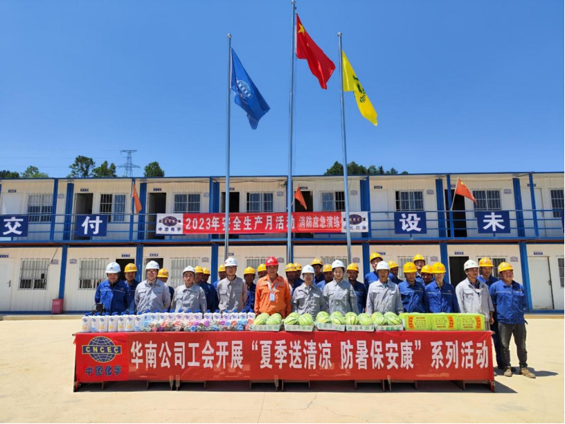 為做好高溫天氣勞動作業保護工作,切實維護高溫期間廣大職工的勞動健康權益,近日以來,中南公司在多個項目相繼開展“夏送清涼”活動。