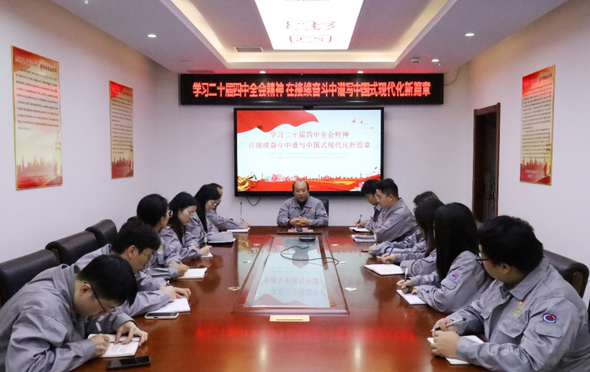 黨的二十屆四中全會召開后,中國化學工程第四建設有限公司各級黨組織高度重視,認真傳達全會精神,通過專題學習、集體研討、理論宣講、主題黨日等形式,全面系統學習全會的核心要義、精神實質、豐富內涵和實踐要求,把思想和行動切實統一到黨中央決策部署上來,確保全會精神入腦入心、走深走實、落地生根。