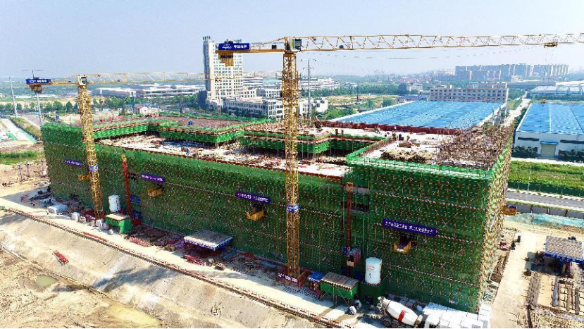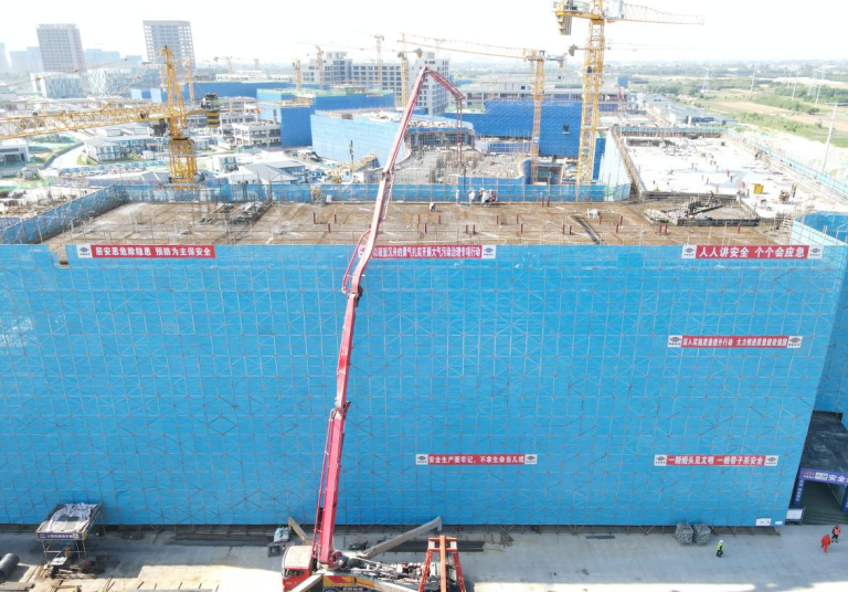 近日,伴隨著混凝土嗡嗡的澆搗聲,由港晨公司承建的岳陽自貿片區數字經濟產業綜合體項目C1棟主體結構封頂。